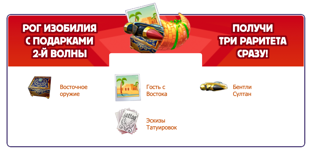 Рог изобилия — это предмет, который содержит в себе все раритеты текущей волны подарков сразу в максимальной модификации и является желанным призом для любого игрока!
